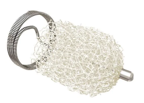 - El dispositivo se suministra pre cargado en un introductor con el tapón SMP contraído. Está diseñado para ser dispensado en el vaso afectado mediante una guía a través de un catéter/vaina estándar. Una vez desplegado en el vaso afectado y expuesto a un medio acuoso y a la temperatura corporal, el tapón SMP se autoexpandirá para embolizar el vaso afectado.